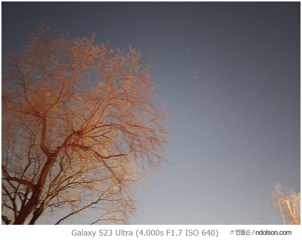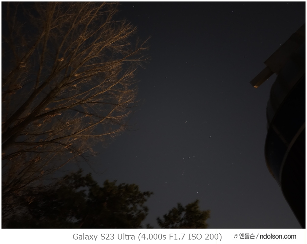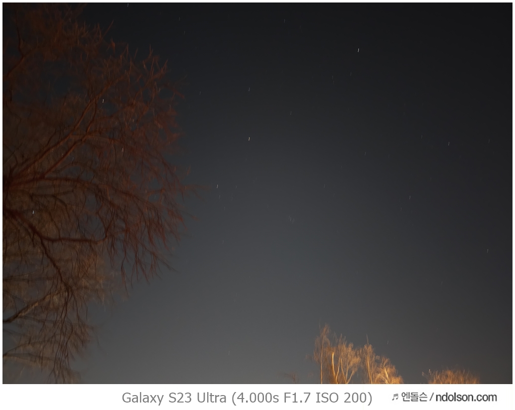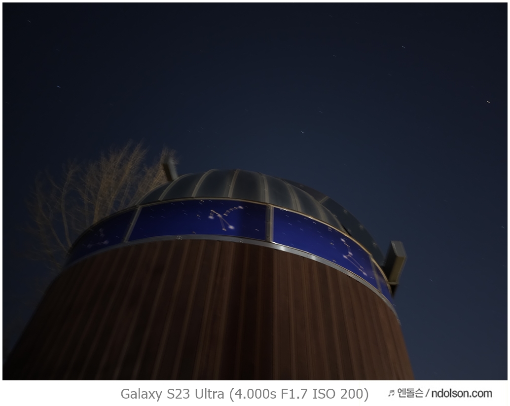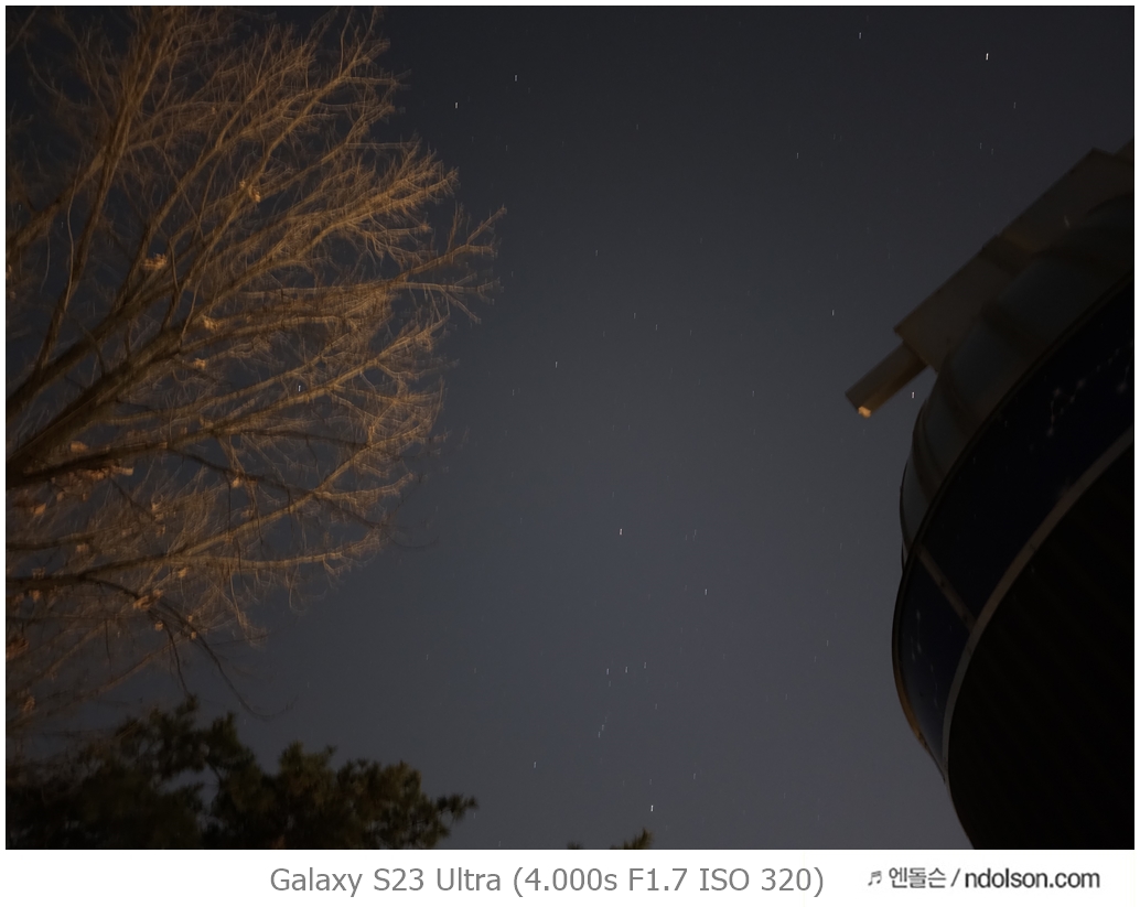 이번에 갤럭시 S23 울트라로 밤하늘의 달 촬영을 위해 100배 줌을 활용해 보았습니다. 또 하이퍼랩스로 별 궤적을 장노출 시켜 촬영했습니다.