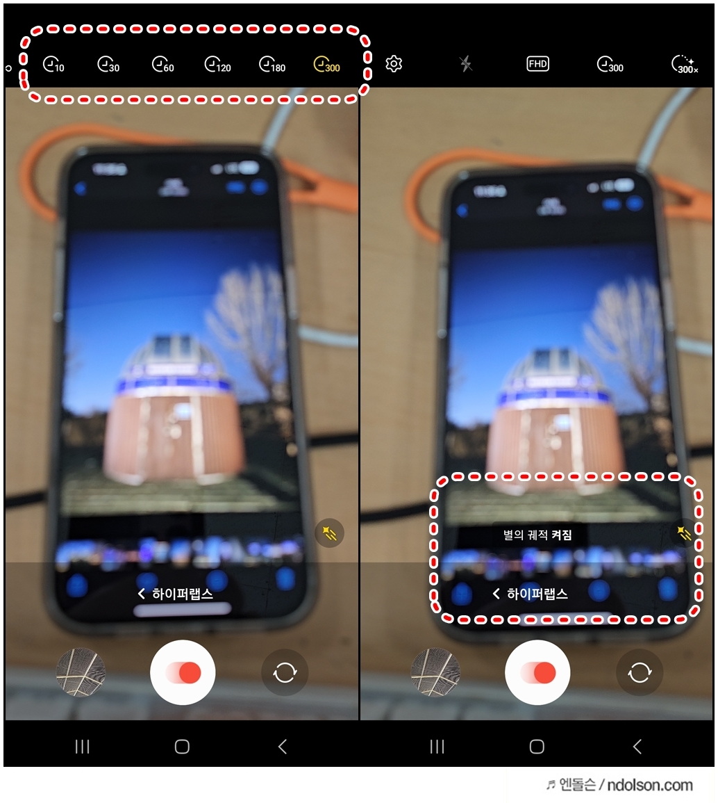 하이퍼랩스에서 별궤적을 켜고 시간은 300시간, 별궤적시간도 설정해 두면, 무한대로 촬영하다가 중지하면 됩니다.