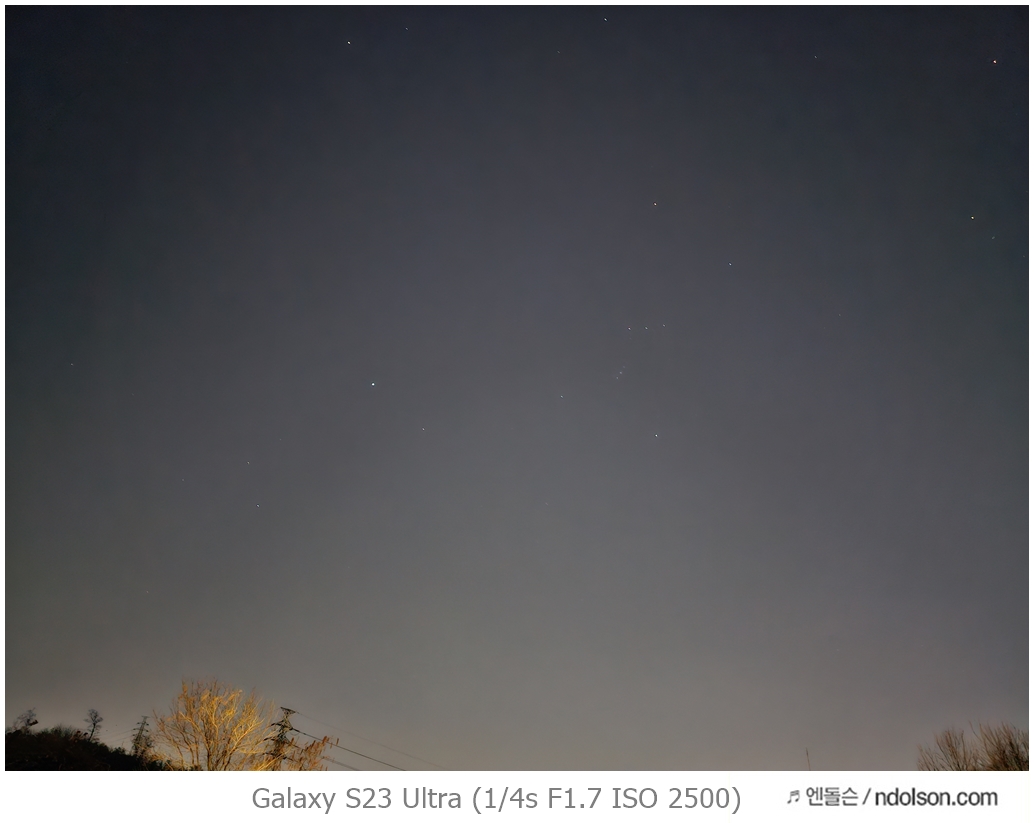 S23 울트라의 Expert RAW 모드에서는 별자리 가이드가 있어 별자리 찾기가 쉽습니다. 또 RAW 파일로 생성되어 Lightroom(라이트룸)이나 어도비로 편집하여 별 사진을 보정할 수 있습니다.