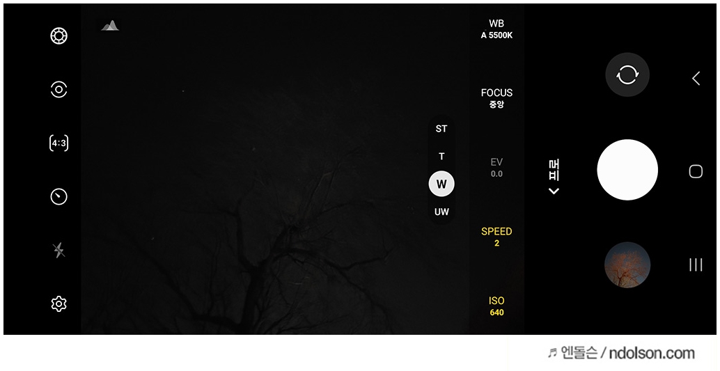 반대로 너무 밝게 촬영되었다면 ISO 수치를 낮추고 셔터스피드도 높입니다. (ISO800 -> 640, 15초->10초)