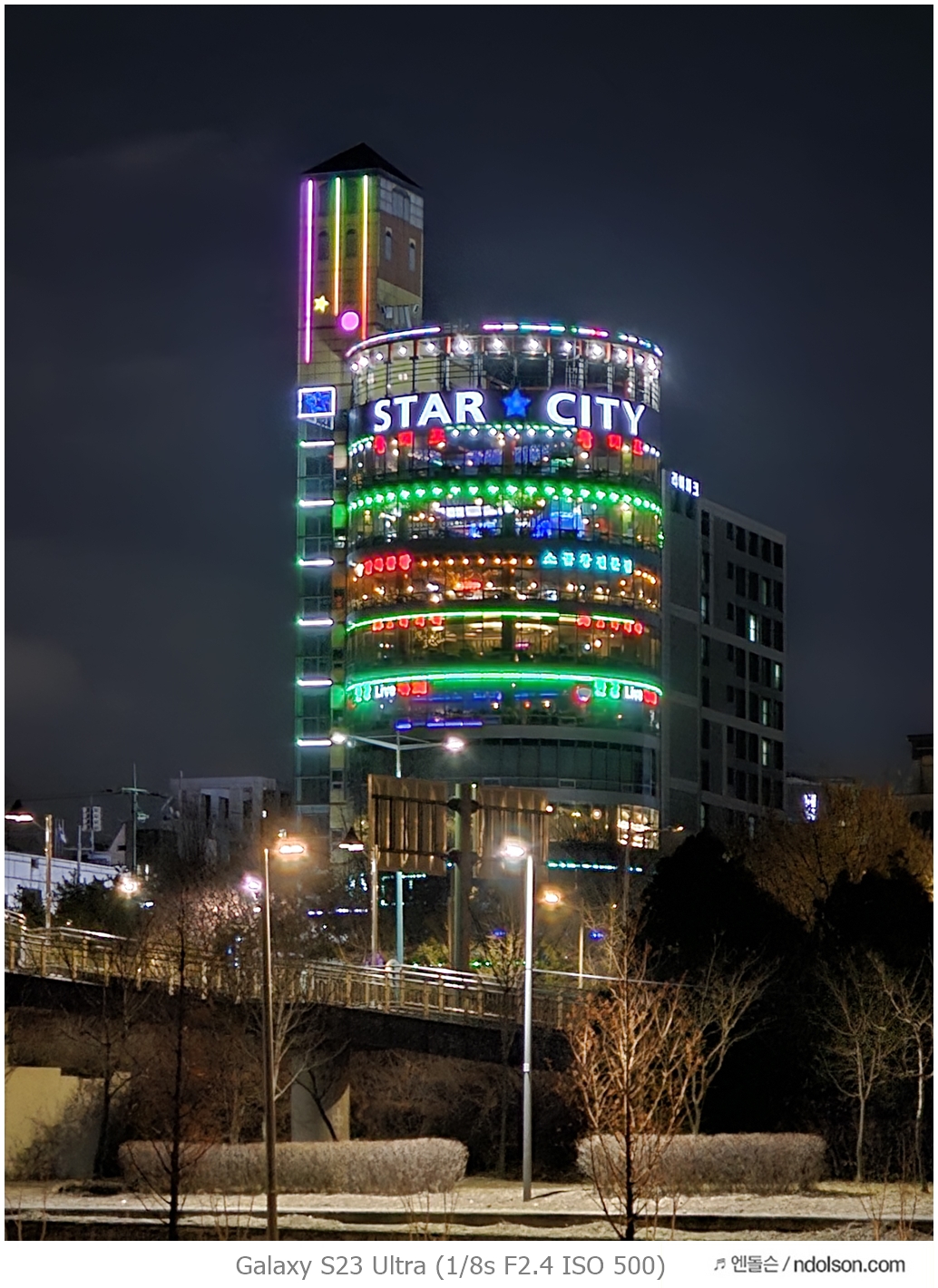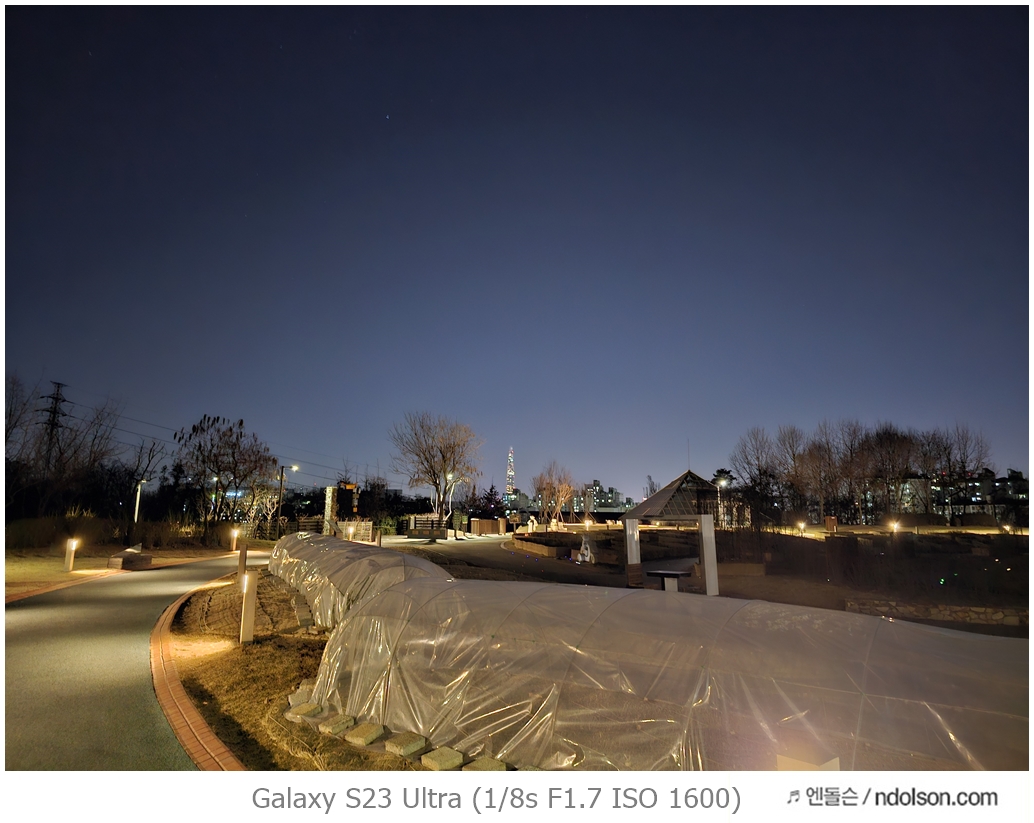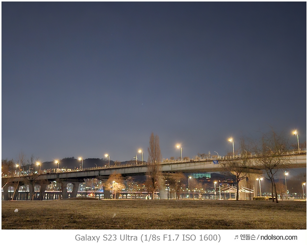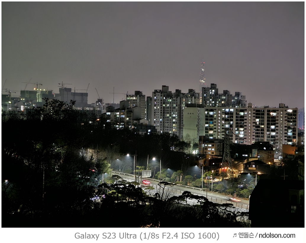 밤하늘과 거리 등의 야간 사진을 갤럭시 S23 울트라로 하였습니다. 습작도 포함되어 있는데, 프로모드에서 셔터스피드를 조절해서 차량이 지나가는 불빛 촬영을 하는 신기루 현상은 DSLR 놀이였는데 참 재미있네요.