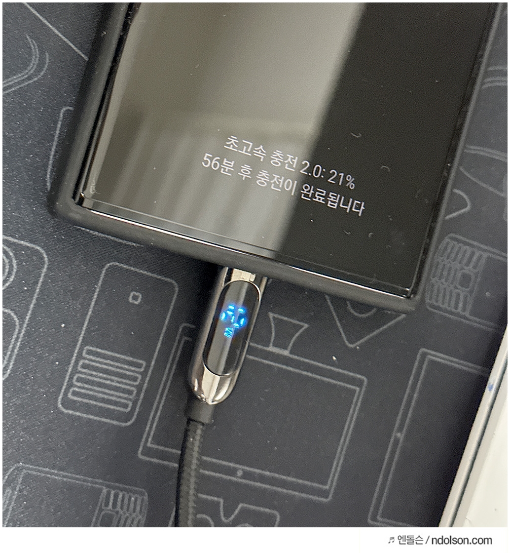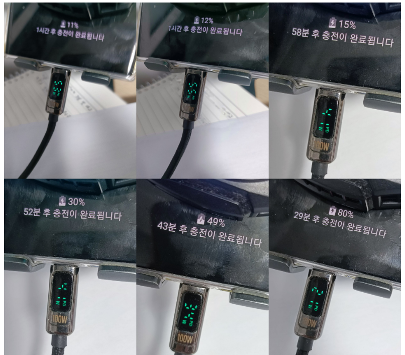 65W PD충전기로 100W 케이블로 충전하였습니다. 37W 까지는 충전이 들어갑니다. 충전시간은 완충까지 56분 정도 예상되었습니다. 확실히 충전 속도가 빠릅니다.