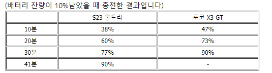이렇게 갤럭시S23 울트라는 초고속 충전이 가능해서 충전 시간이 단축됩니다.