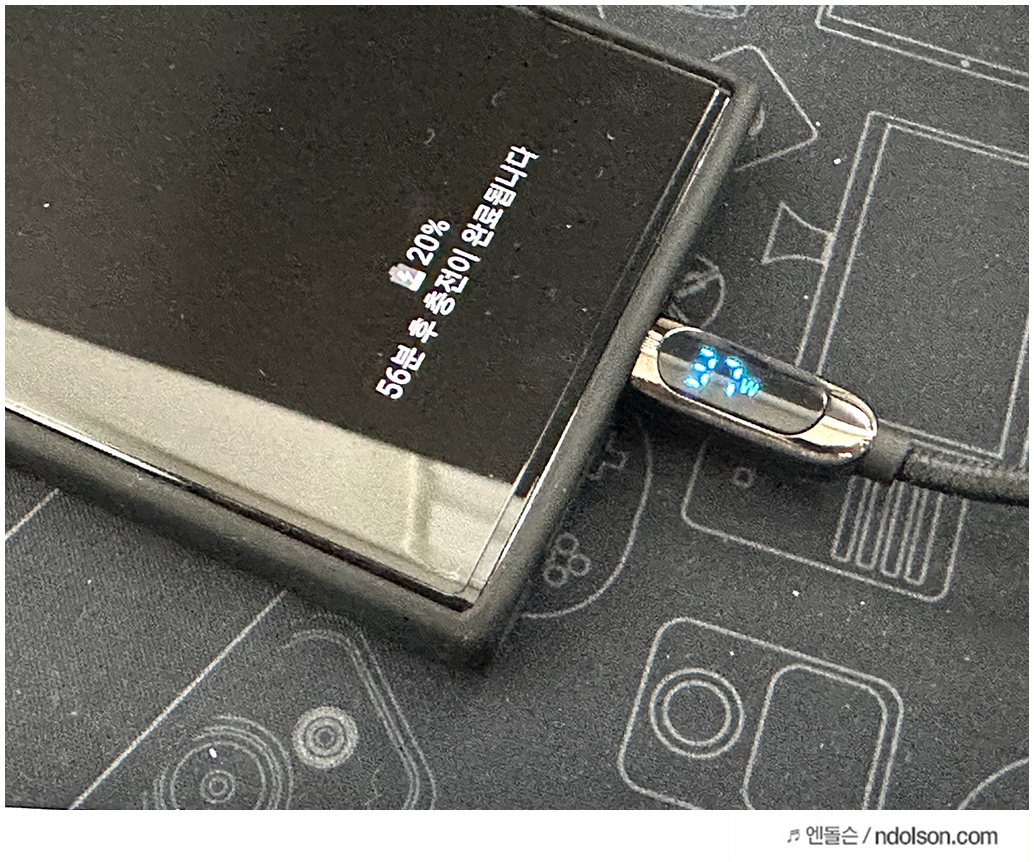 65W PD충전기로 100W 케이블로 충전하였습니다. 37W 까지는 충전이 들어갑니다. 충전시간은 완충까지 56분 정도 예상되었습니다. 확실히 충전 속도가 빠릅니다.