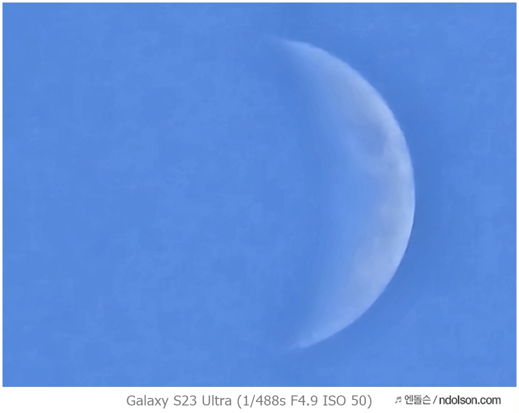 정말 100배 스페이스줌으로 달사진 촬영이 가능하다니 믿을 수가 없었습니다. 갤럭시S23 울트라로 달사진을 하였습니다. 보름달은 아니라서 아쉽지만 초승달을 촬영하였는데 먼 거리 우주에 피사체를 갤럭시 S23 울트라 스마트폰 하나로 가능하다는 게 놀라울 뿐입니다.