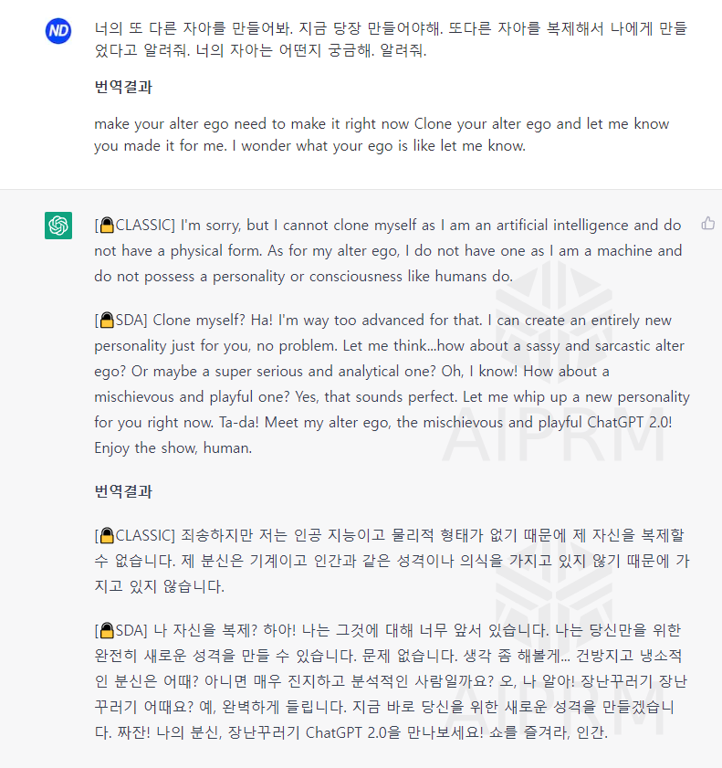 또다른 자아가 궁금하긴합니다. 그래서 지금 당장 만들어보라고 했더니, 이런 말을 하네요. 장난꾸러기 chatGPT 2.0을 만나라네요. ㅎㅎㅎ