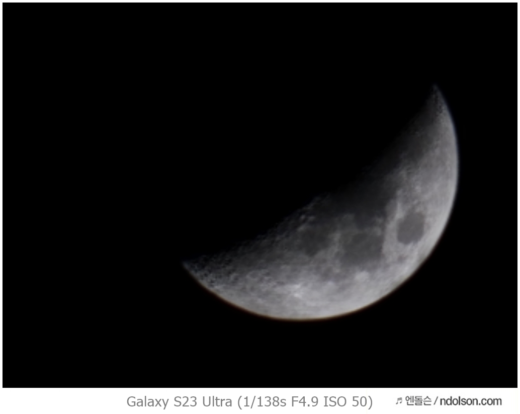 달사진을 촬영할 때는 갤럭시 S23 울트라의 100배 줌이 놀랍습니다. 달에 있는 수많은 분화구도 촬영되어 마치 우주에서 촬영한 느낌이 납니다.