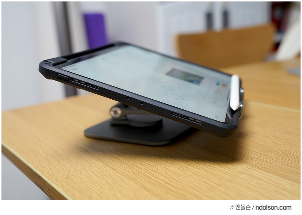 특히 아이패드 필기도구로 약간의 각도를 요구하는 작업에서 좋습니다. GOOJODOQ 아이패드 거치대로 각도가 자유롭기 때문에 필기할 때 더 좋습니다. 눌러도 흔들림이 적습니다.