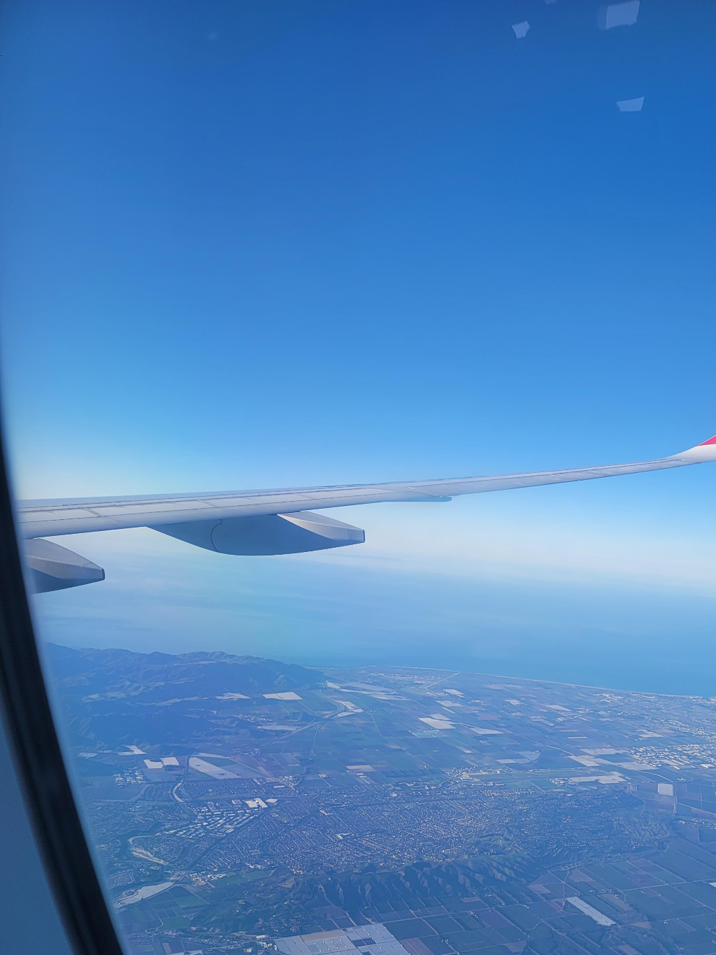 아시아나 창문밖으로 LA땅이 보이기 시작합니다.
