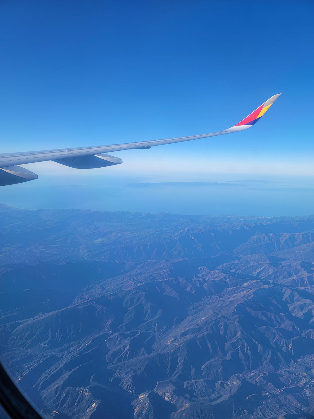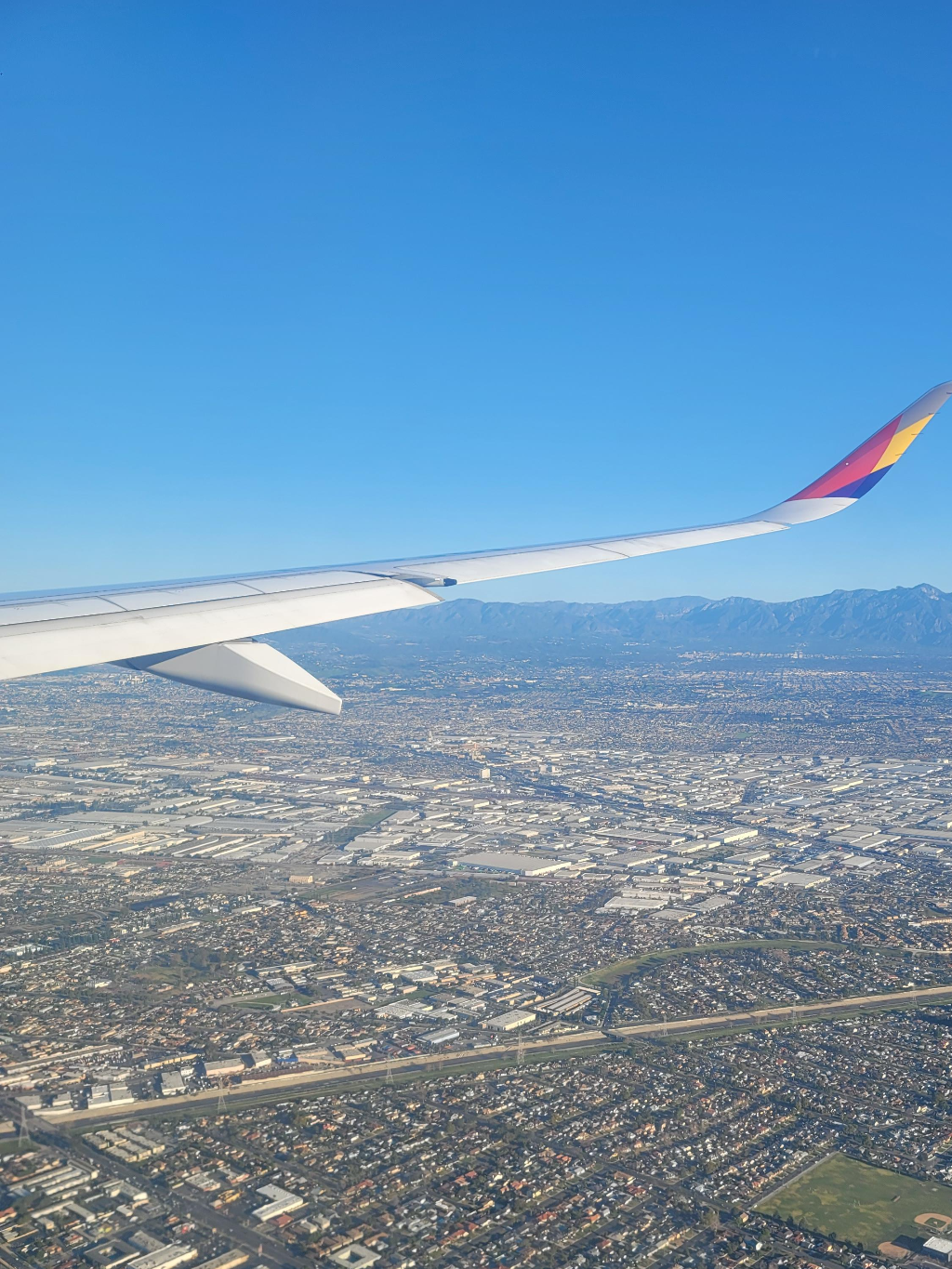 아시아나 창문밖으로 LA땅이 보이기 시작합니다.