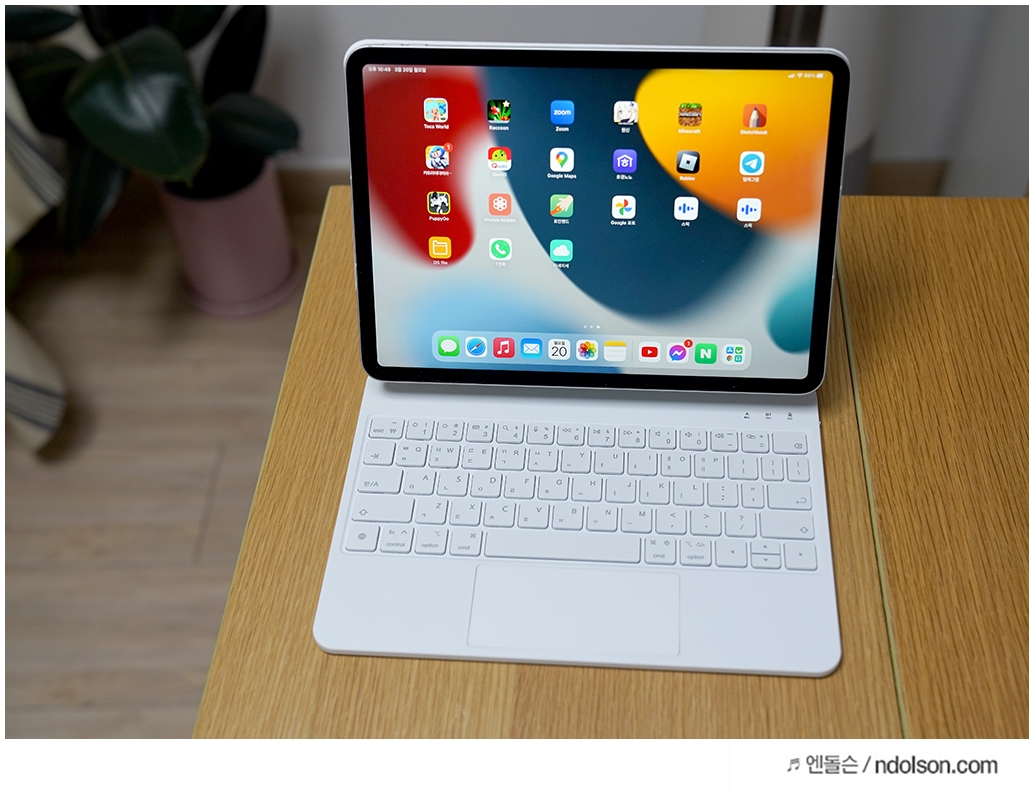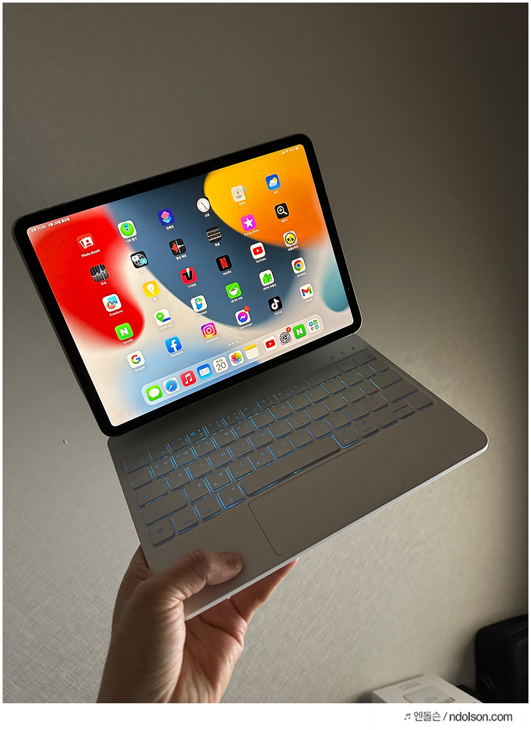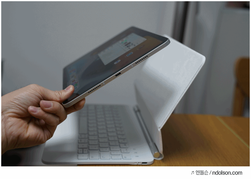 장점이자 단점은 아이패드 매직키보드를 연결하는 게 블루투스입니다.