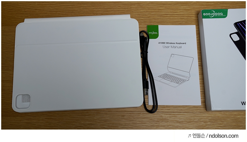 구조독 아이패드 매직 키보드의 구성품은 USB-A/C 타입의 충전 케이블과 본체가 있습니다.
