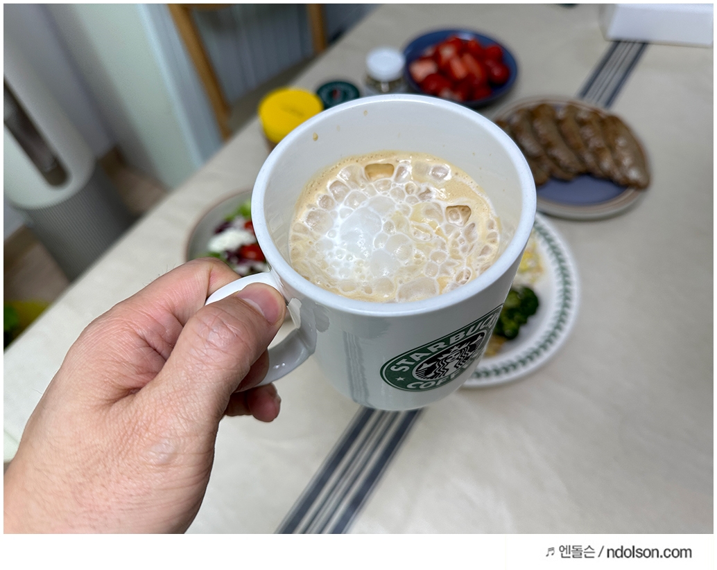 하리오 우유거품기에 우유를 넣거 전자렌지에 돌려서 따뜻한 라떼로 만들어야 합니다. 하지만 그냥 우유도 거품이 잘나서 괜찮더라고요.