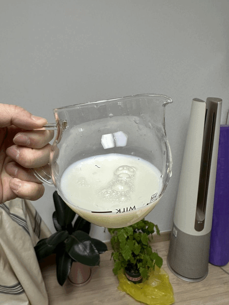 거품이 정말 가득 올라오니, 우유는 정해진 선까지만 넣어야 합니다.