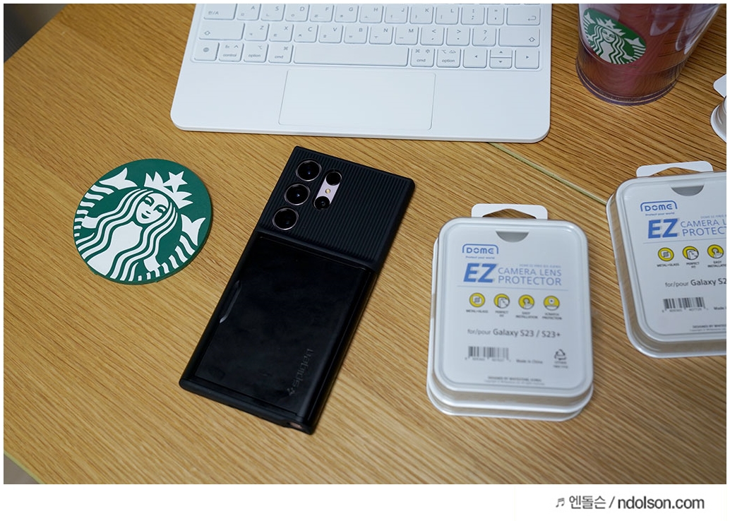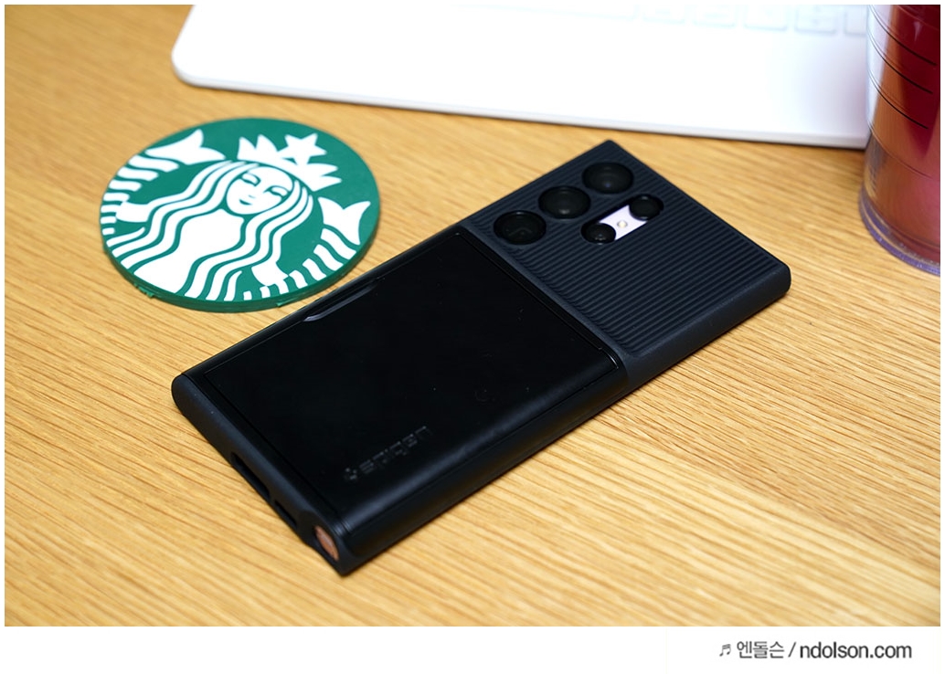기존 사용하던 슈피겐 S23 울트라 카드케이스랑도 호환이 잘됩니다. 카메라에 링타입 보호필름이라 큰 갭이 없어서 같습니다.