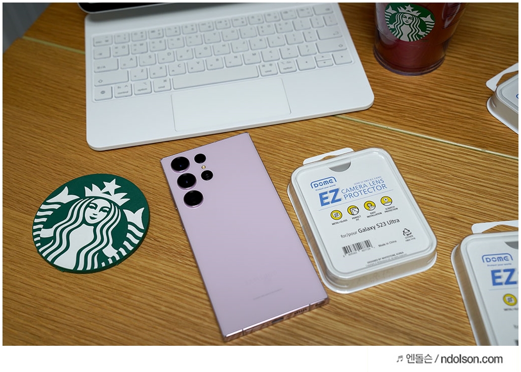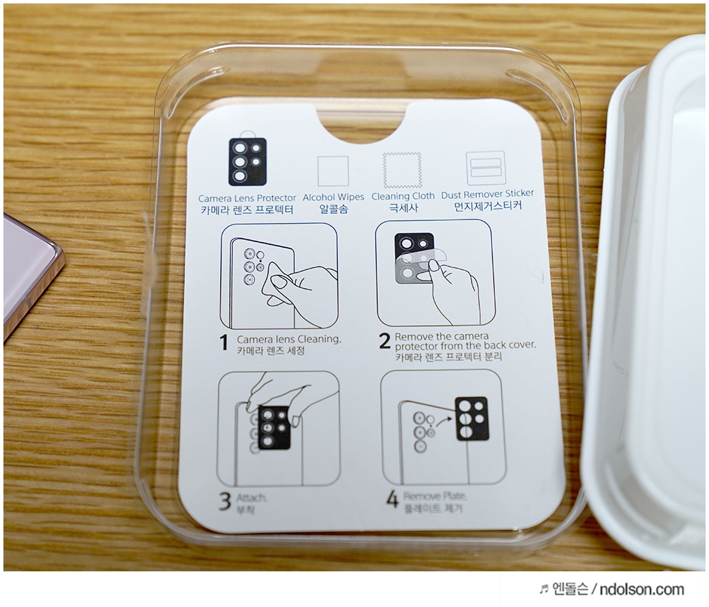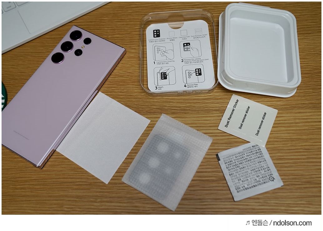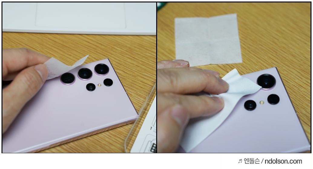 알코올솜과 극세사천으로 S23 울트라 카메라 렌즈를 잘 닦고 화이트스톤의 EZ 프로텍터를 붙이면 됩니다.