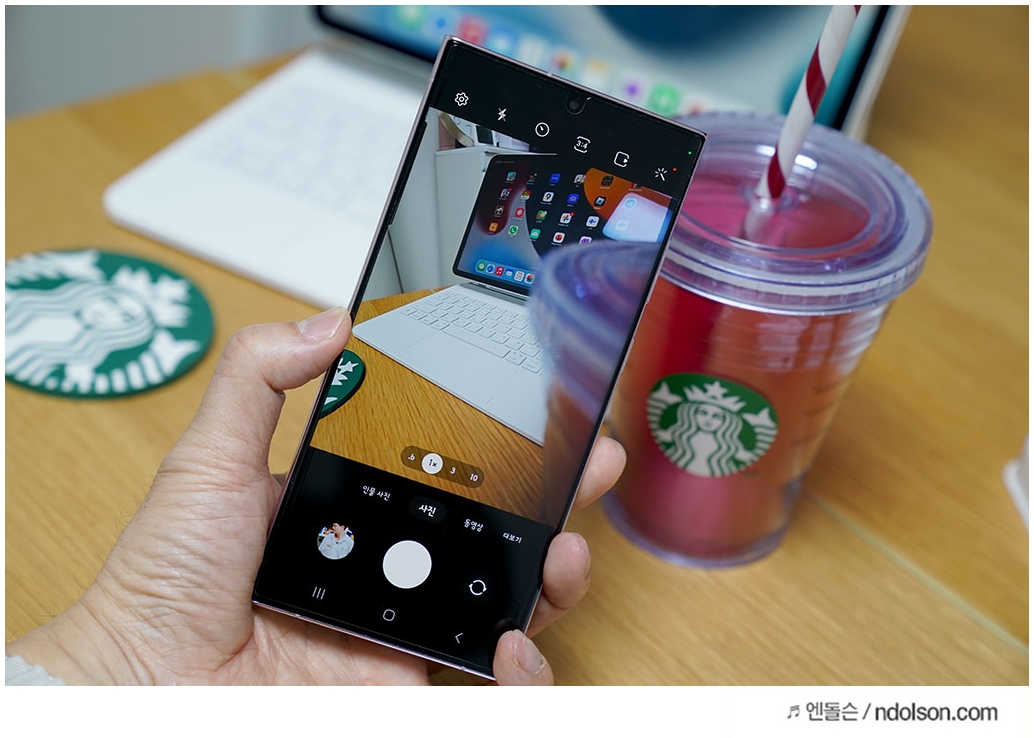 갤럭시 S23 울트라의 카메라를 켜서 문제가 있나 확인하였지만, 이물질도 없고 고스트현상도 없어 안심되었습니다.