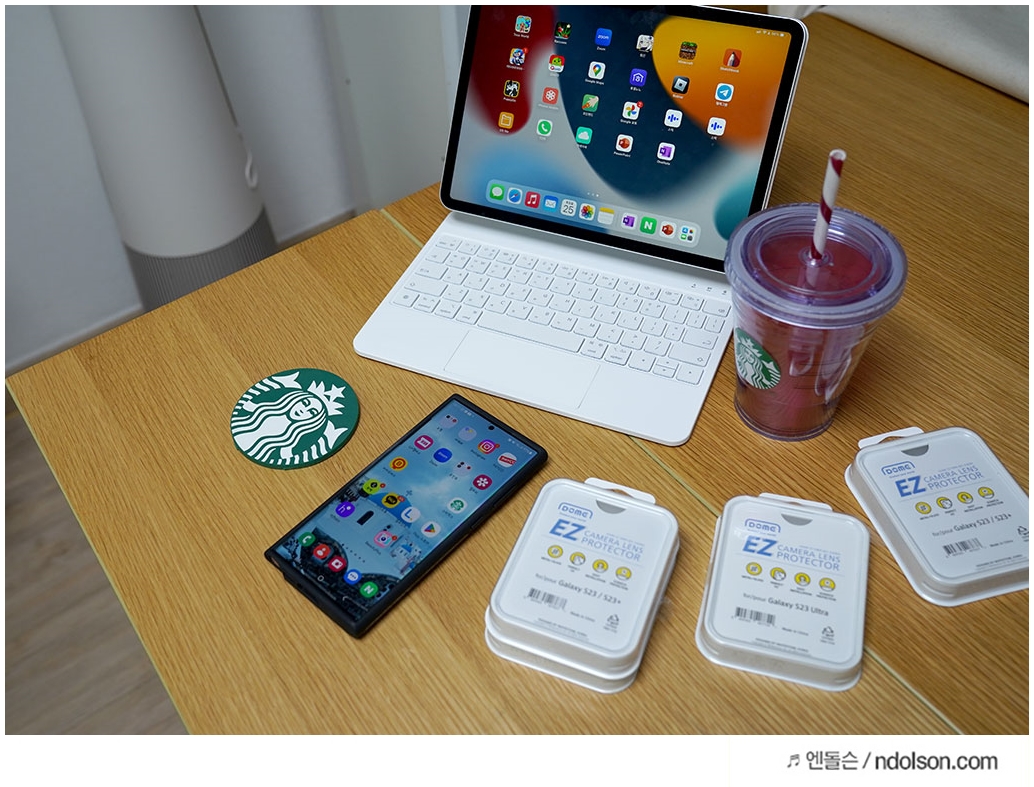 부착 후, 0.25mm의 두께라 변경도 체감을 못할 정도의 정교한 보호필름이었네요. 이제 더 안심하고 갤럭시S23 울트라 스마트폰을 사용할 수 있게 되어 좋네요!
