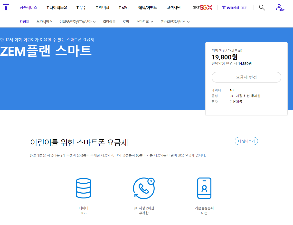 SKT, KT, U+ 모두 키즈 요금제가 있는 데, 가격은 연령에 따라 각기 다릅니다.