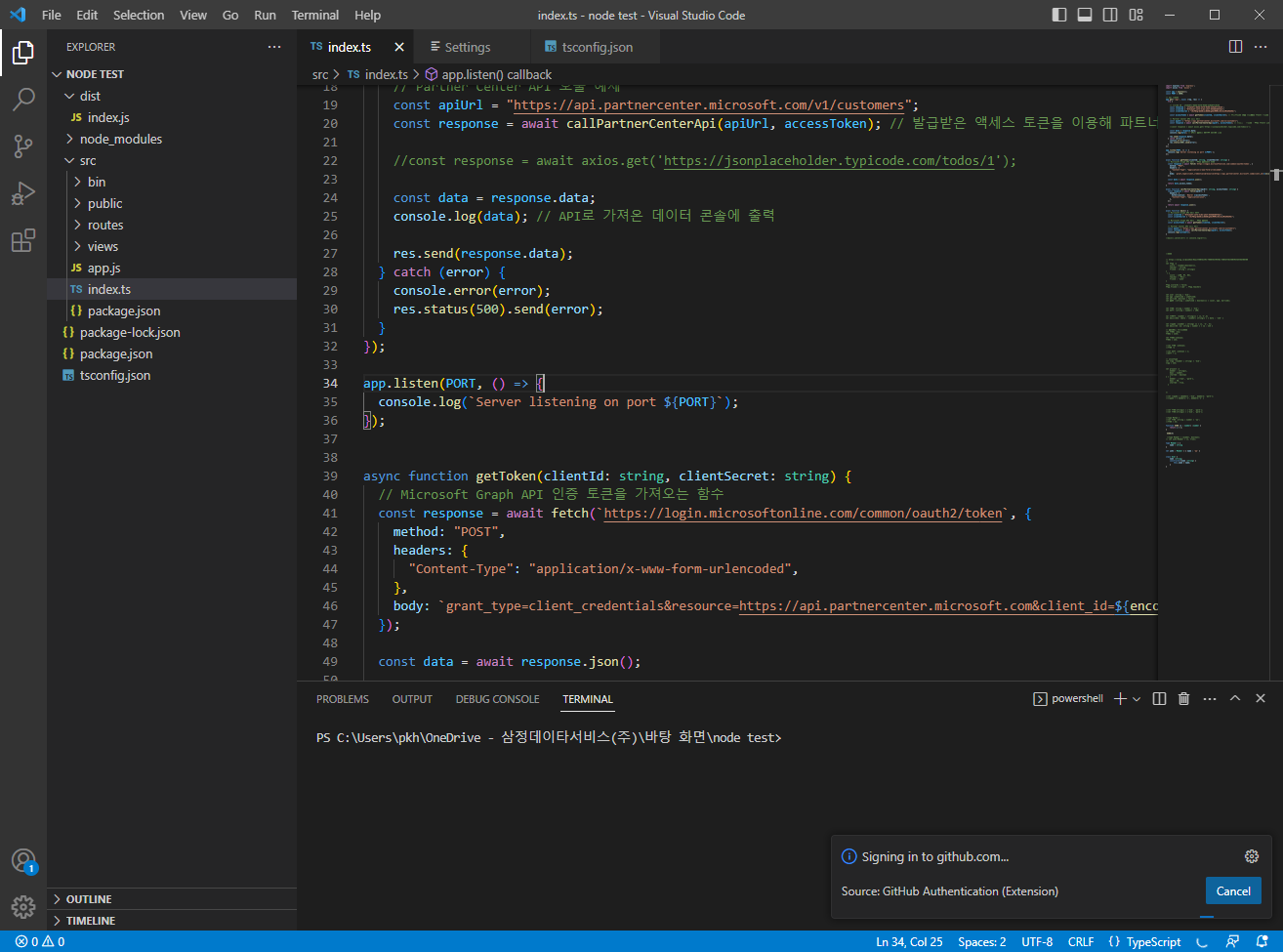 승인해 주면, 이제 GitHub Copilot을 사용한 코딩이 가능합니다.