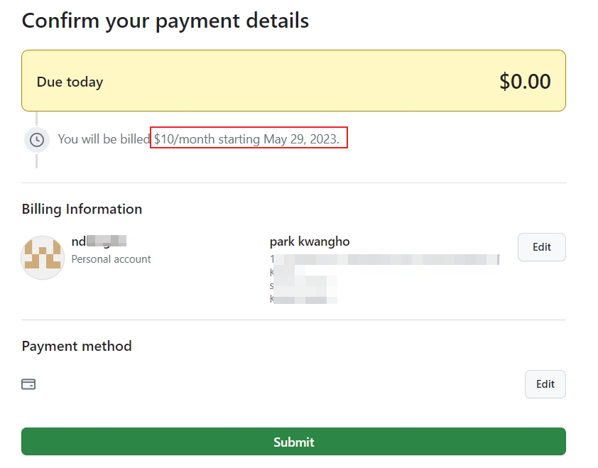 깃허브의 코파일럿을 사용하려면 1달에 10달러, 1년에 100달러의 비용이 발생합니다.