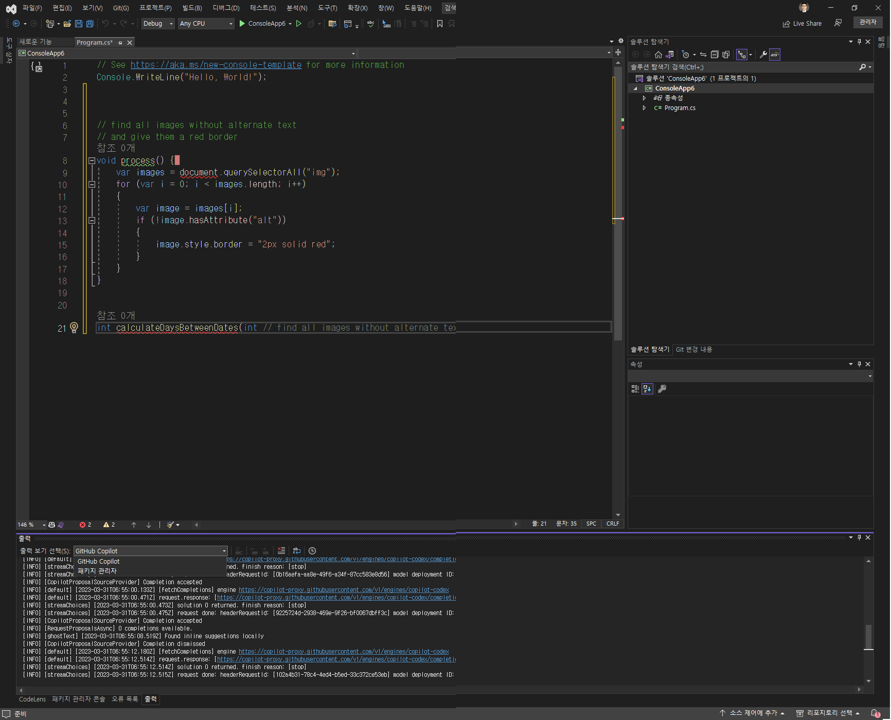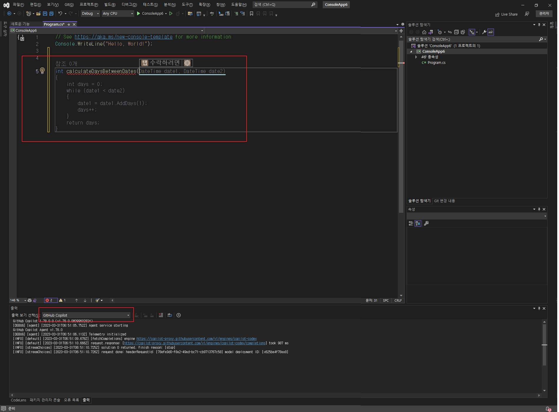 GitHub Copilot를 사용할 수 있게 되었습니다.