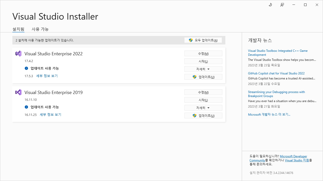 Visual Studio 2022를 업데이트하고 나면 GitHub Copilot가 설치됩니다.
