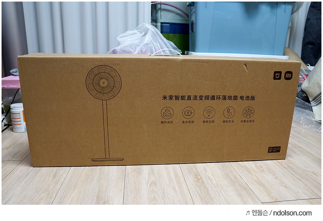 샤오미 무선선풍기 5세대를 해외직구로 구매하였습니다. 박스는 종이 포장과 비닐로 스크래치를 방지해두었네요.