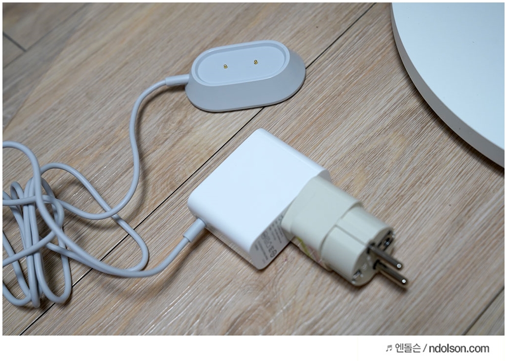 샤오미 선풍기 5세대의 장점은 충전도 무선이라는 것입니다. 자석타입의 마그네틱의 충전부가 하단에 붙여서 충전이 됩니다.