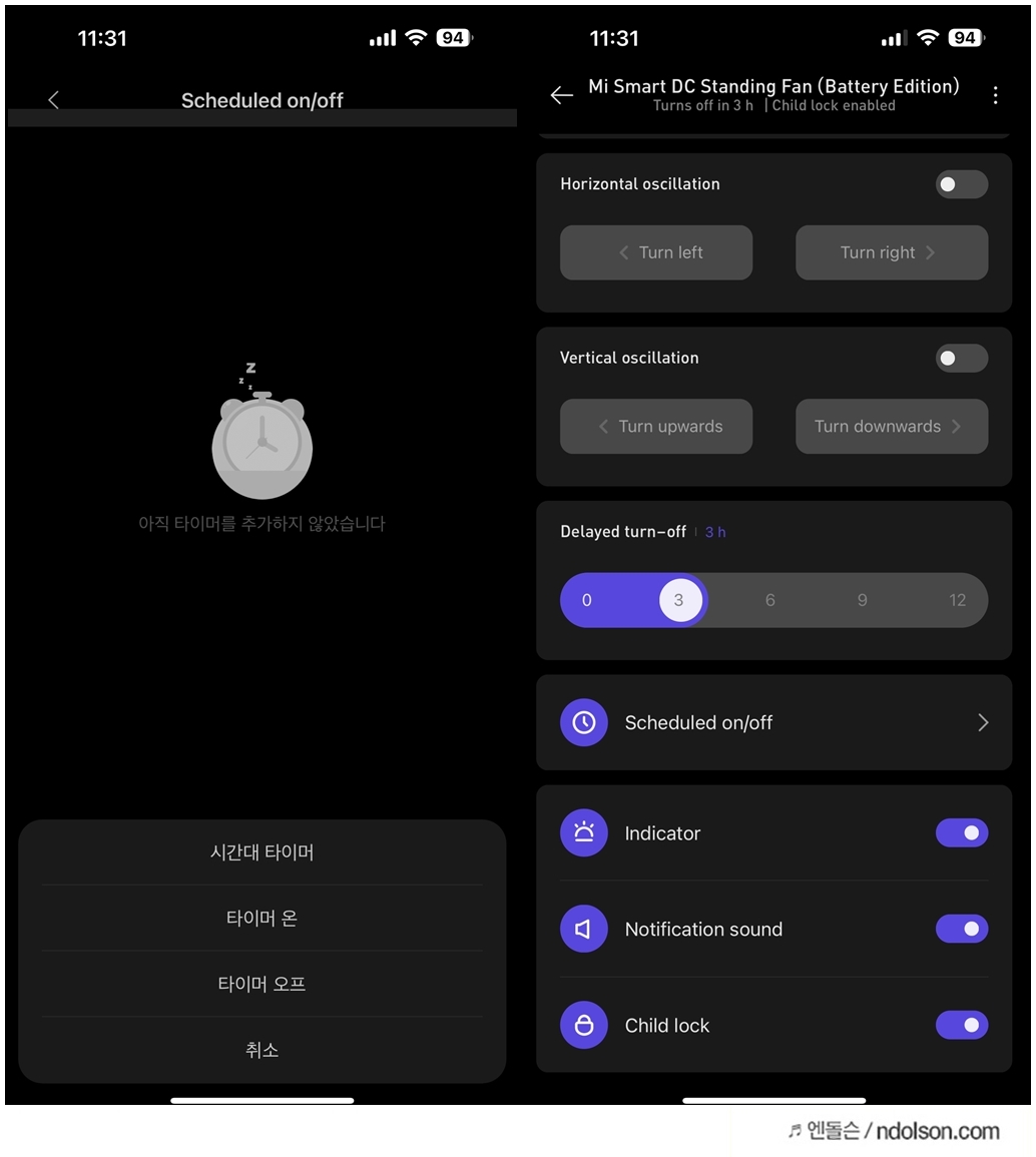 그때 샤오미 선풍기가 켜지게 스케줄링을 해둘 수 있습니다. 또 자동으로 몇 시 이후에는 꺼지게도 설정하면 편리합니다.