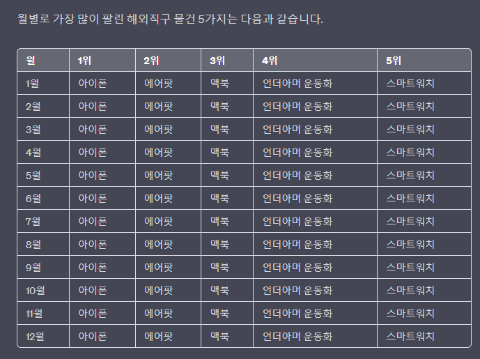 API를 연동해서 정보를 가져오라고 해도 계속 자료가 바뀌고, 엑셀도 못합니다. 1월부터 12월까지 똑같은 데이터를 주는 바보 챗 GPT
