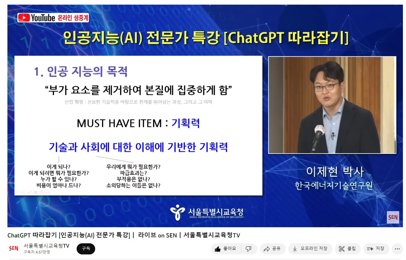 또 책만큼 서울대 물리학, 전 삼성전자 연구원의 인사이트를 얻을 수 있었던 영상도 좋았습니다. 왜 챗GPT가 대세가 되었고 왜 이런 국가경쟁력의 차이가 더 벌어지게 될지 생각하게 되었습니다.