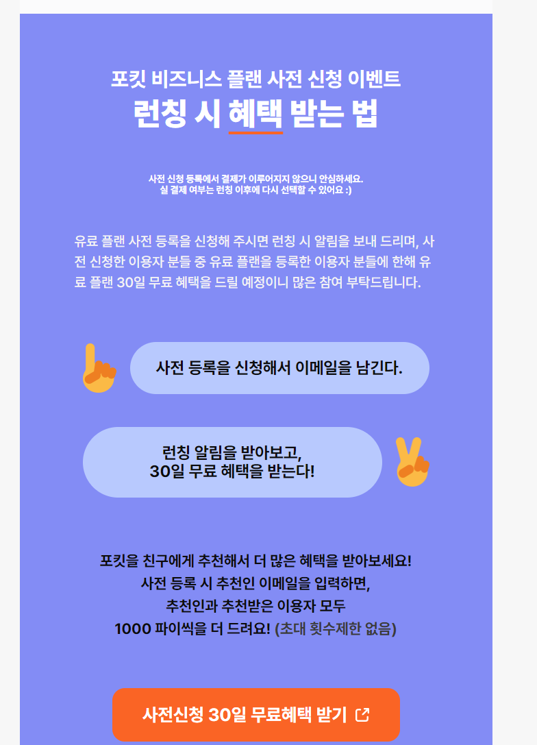 비즈니스 플랜 사전 신청 이벤트에 추천인 혜택 이벤트도 함께 진행하고 있습니다.