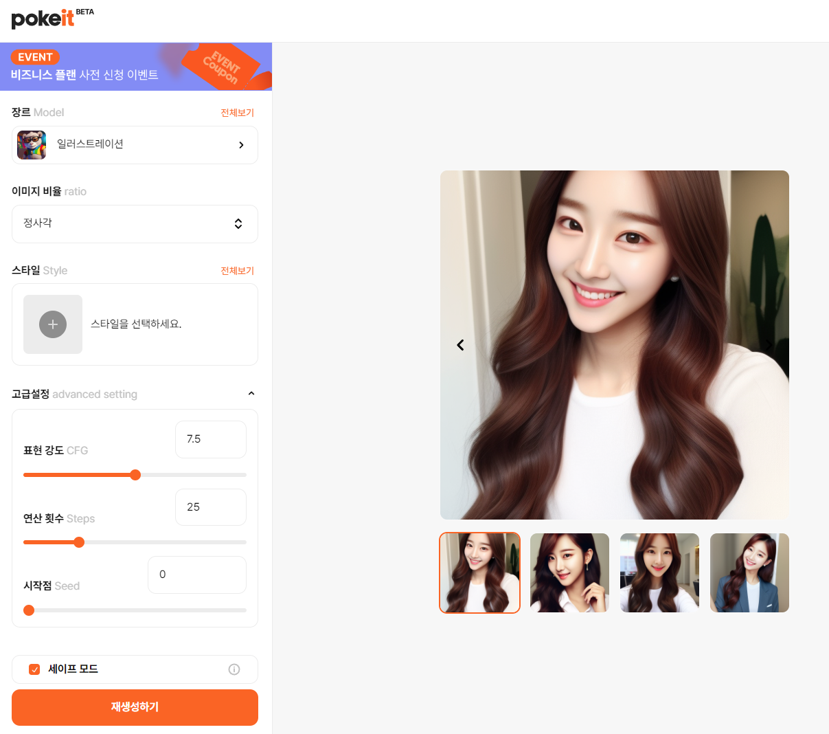조금씩 표현 강도 등을 조정해서 원하는 이미지를 계속 변형해서 만들어 볼 수 있습니다.