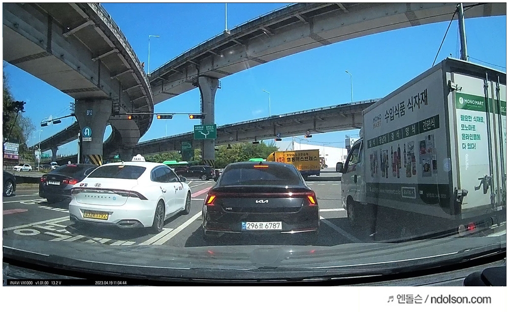 동영상을 옮겨 켭처를 해보았습니다. QHD 전면 블랙박스 촬영화질이라 앞차의 차량번호 식별이 아주 잘됩니다. 역시 화질이 좋은 블랙박스라 선명합니다.
