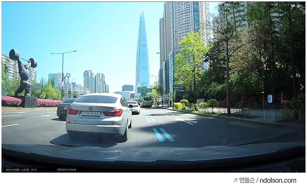 정면, 측면 모든 곳에서 주간에 아이나비 VX1000으로 촬영된 영상에서 화질이 좋게 녹화가 되었습니다.