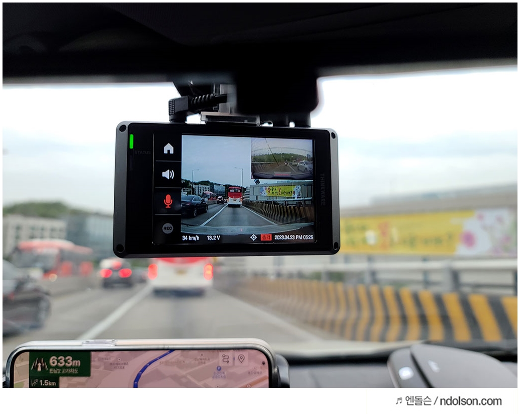 아이나비 VX1000은 블랙박스는 IPS 3.5인치의 대화면이라 시원스러운 화면을 보여줍니다. 촬영 중인 부분을 계속 보지 않지만 다시 확인해야 하는영상이 있을 때 바로 보기 좋습니다. 라이브 화질이 아주 좋습니다.