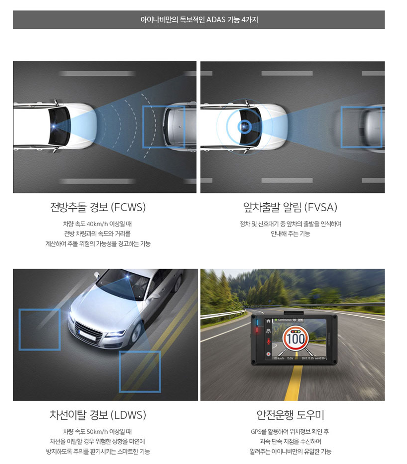 아이나비 블랙박스 사고 방지를 위한 ADAS 차선이탈 경보 기능의 VX1000