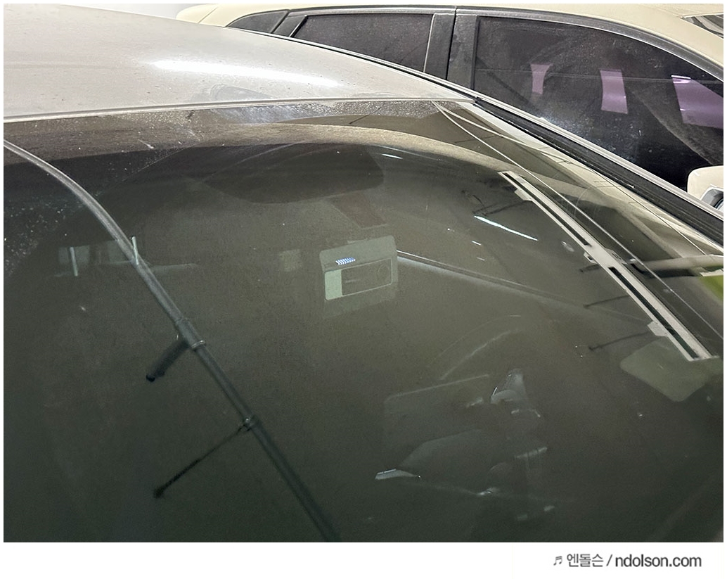 주차장에서 자동차 블랙박스가 있으면 안심이 됩니다. 시큐리티 LED 가 돌고 있어 블랙박스 촬영 중인 차량인 걸 쉽게 알 수 있습니다.