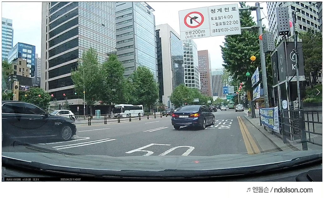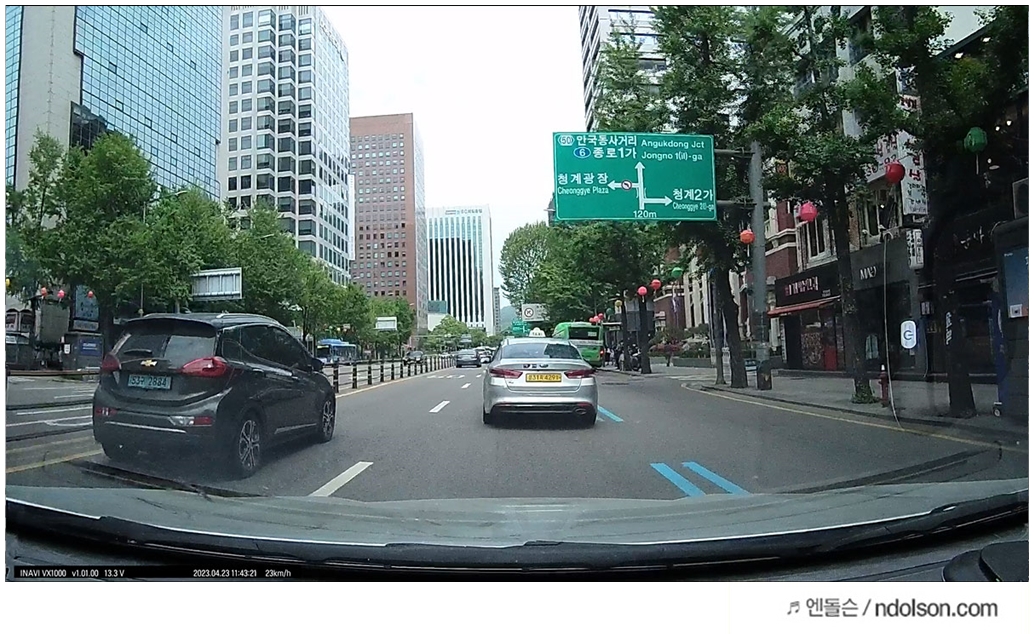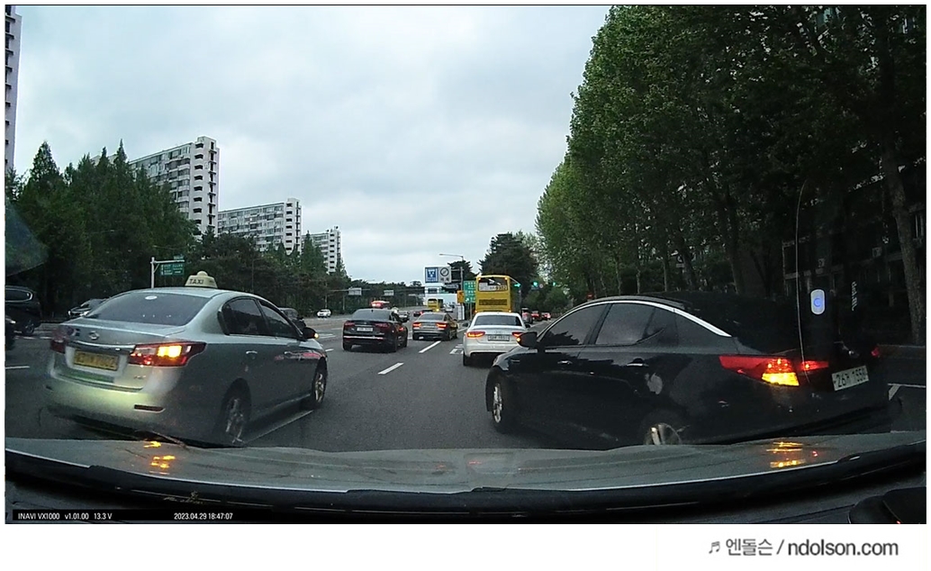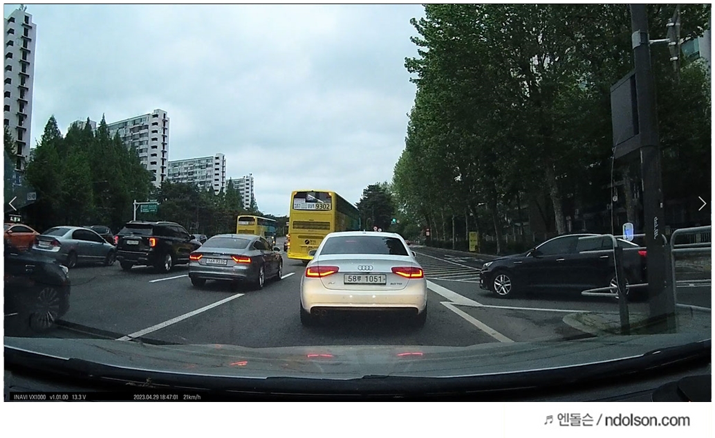 아이나비 블랙박스의 화질은 컴퓨터로 옮겨 캡처하였습니다. 화질이 또렷하고 번호판 식별과 주변 상황을 인지할 수 있게 영상이 잘 녹화되었습니다.