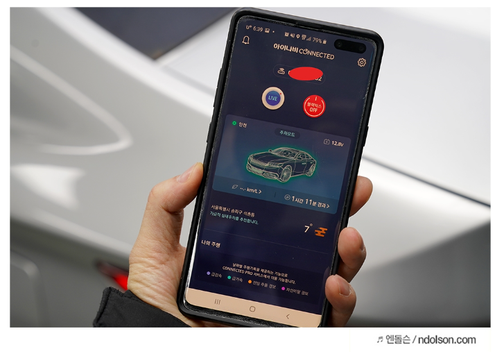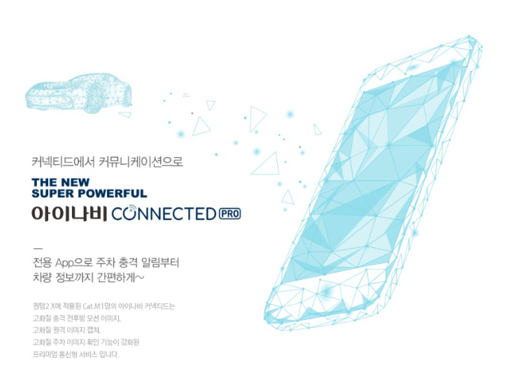 아이나비 커넥티드 스탠다드 플러스 모듈과 VX1000 블랙박스를 장착해서 앱연동을 통해서 실시간 알람을 받을 수 있습니다.