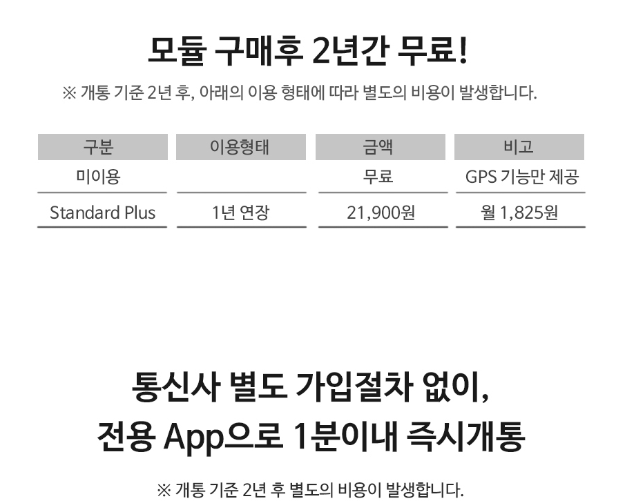 아이나비 커넥티드 스탠더드 플러스 요금은 2년간은 무료입니다. 또 미사용 하게 되면 GPS는 무료로 이용이 가능합니다. 월요금은 1,825원으로 저렴합니다.