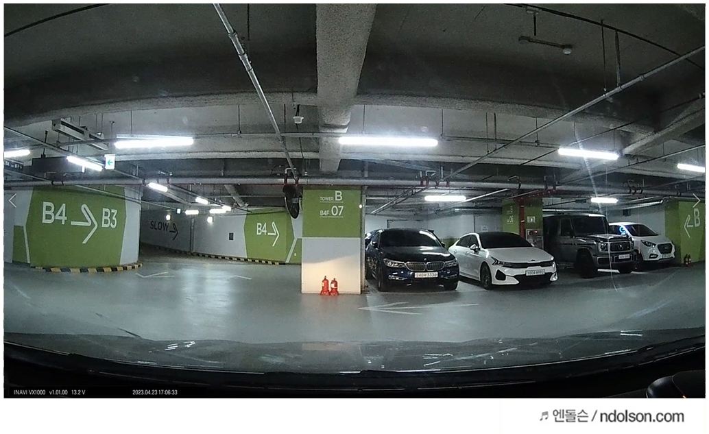 주차장에 장기 주차하였는 데, 블랙박스 영상으로 잘 촬영이 되었습니다. 혹시나 충격이 감지되면 실시간으로 아이나비 커넥티드로 앱 푸시가 와서 쉽게 알 수 있습니다.