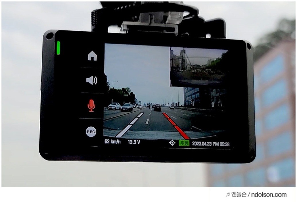 아이나비 VX1000은 블랙박스는 IPS 3.5인치의 대화면이라 시원스러운 화면을 보여줍니다. 촬영 중인 부분을 계속 보지 않지만 다시 확인해야 하는영상이 있을 때 바로 보기 좋습니다. 라이브 화질이 아주 좋습니다.