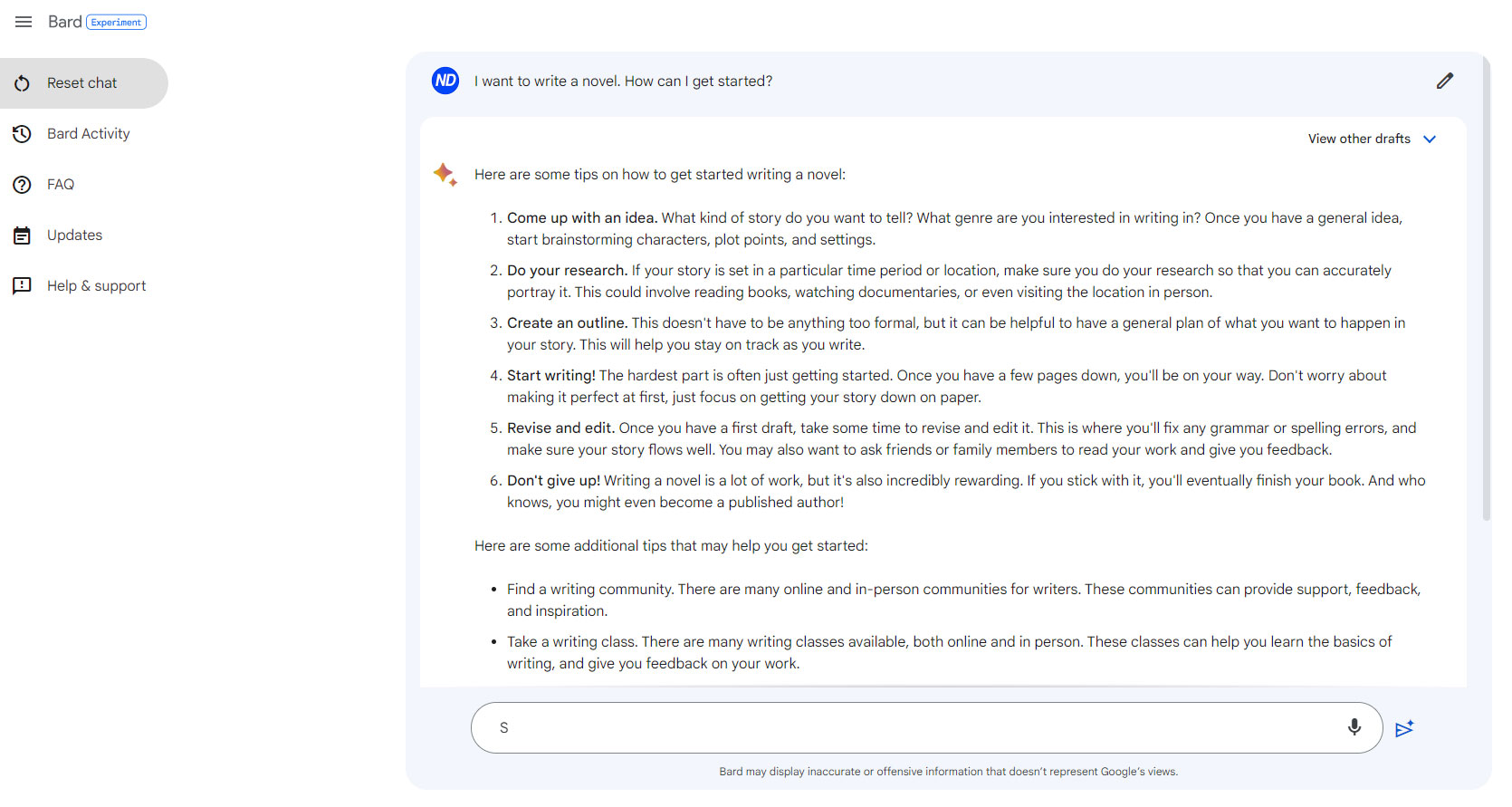 Bard is your creative and helpful collaborator to supercharge your imagination, boost productivity, and bring ideas to life.