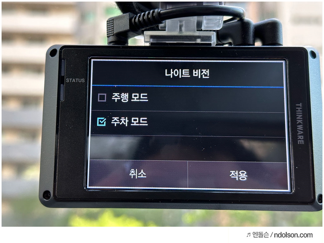 아이나비 블랙박스의 나이트 비전은 주행모드, 주차모드 설정하여 적용할 수 있습니다.