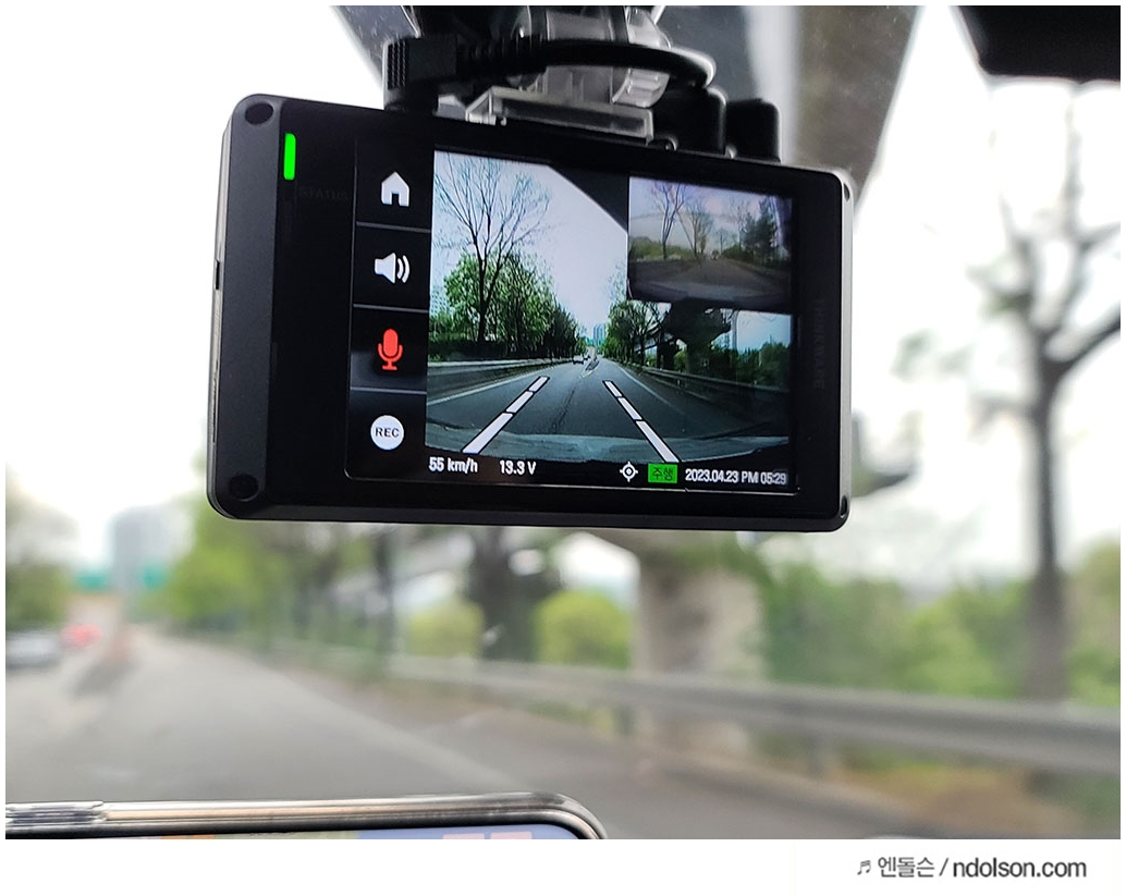 아이나비 VX1000은 차선 이탈이 되면 경고가 오면서 알려줍니다. 또 앞차와 간격이 너무 가까우면 경고를 알려줍니다. 자동차에 추돌방지 및 ADAS 기능이 있으면 좋겠지만, 풀옵션이 아닌 경우 블랙박스에서 알려주는 기능이 상당히 편리합니다.