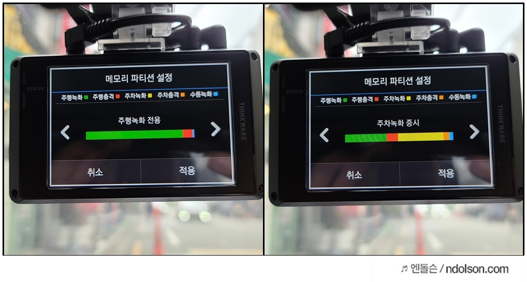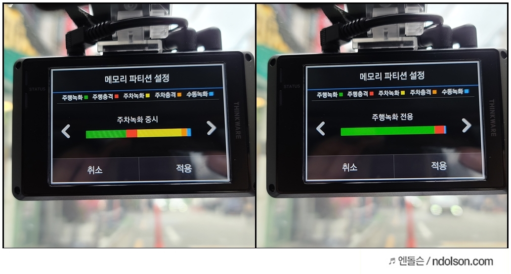 자신의 블랙박스의 SD메모리 카드의 용량 파티션을 어디에 중점을 줄지 정할 수 있습니다.