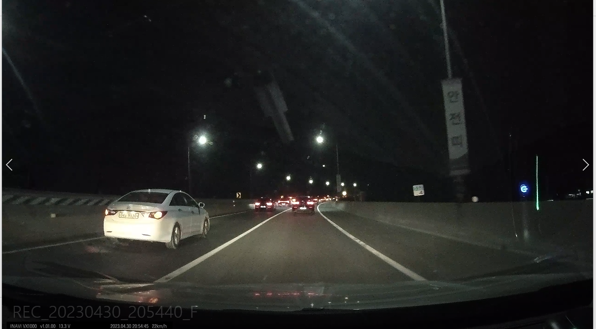 아이나비 블랙박스로 촬영중에 끼어들기를 시도하는 차량의 번호 식별도 잘되었습니다. 이런 블랙박스의 영상 증거는 사고 발생 시 당사자 간의 분쟁을 방지하고, 보험 회사나 경찰 등 관계 기관에서도 유용하게 활용될 수 있습니다. 특히나 차량의 끼어들기로 사고의 경우, 블랙박스 영상을 통해 끼어들기한 차량의 번호나 상황 등을 확인할 수 있어 사고 원인을 명확하게 파악할 수 있습니다.