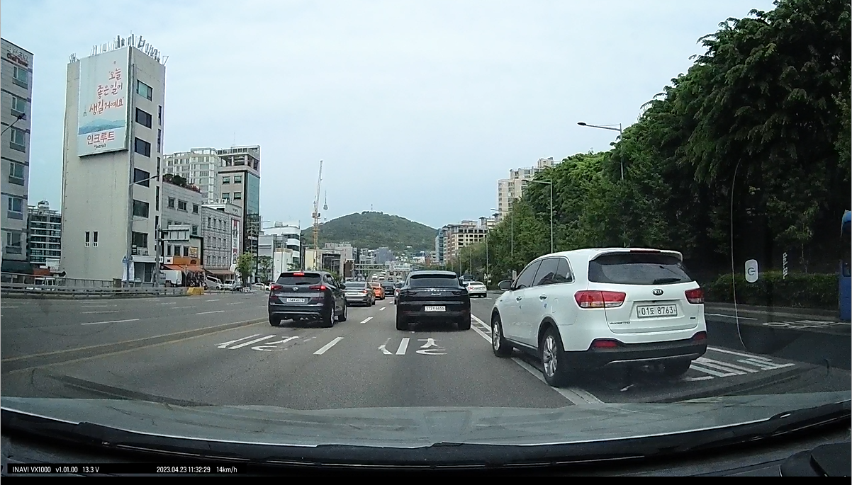 아이나비 블랙박스로 촬영중에 끼어들기를 시도하는 차량의 번호 식별도 잘되었습니다. 이런 블랙박스의 영상 증거는 사고 발생 시 당사자 간의 분쟁을 방지하고, 보험 회사나 경찰 등 관계 기관에서도 유용하게 활용될 수 있습니다. 특히나 차량의 끼어들기로 사고의 경우, 블랙박스 영상을 통해 끼어들기한 차량의 번호나 상황 등을 확인할 수 있어 사고 원인을 명확하게 파악할 수 있습니다.